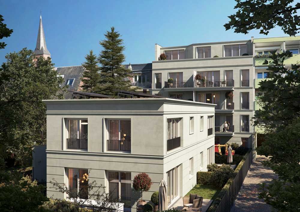 Die neoklassizistische Architektur dieses Neubaus spiegelt Eleganz und Zeitlosigkeit wider, während Jugendstilelemente dem Projekt eine verspielte Leichtigkeit verleihen. Großzügige Fensterfronten lassen viel Licht in die Innenräume und betonen die harmonische Verbindung von Tradition und Moderne. Die fein gearbeiteten Fassadenelemente setzen dabei ästhetische Akzente, die dem Gebäude einen einzigartigen Charakter verleihen.