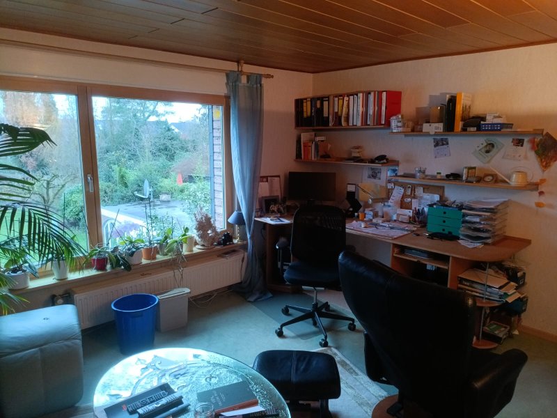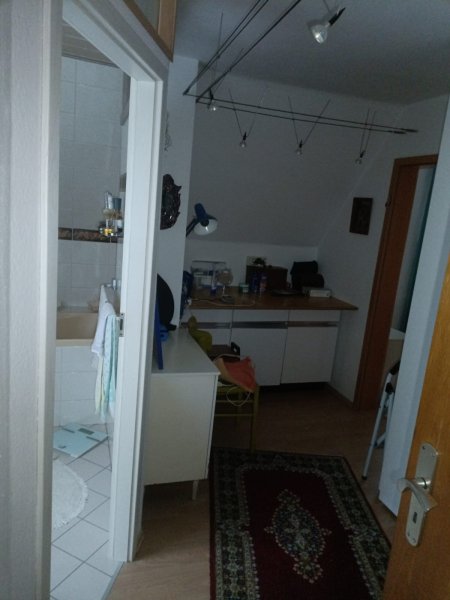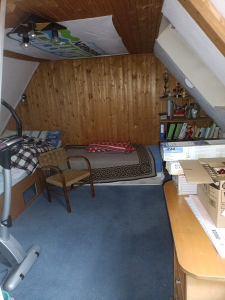 In der ersten Etage befindet sich ein großer, z.Zt. als zweites Wohnzimmer bzw. Büro genutzter Raum, ein Schlafzimmer mit Durchgangszimmer, welches als Ankleideraum genutzt wird und ein großes Badezimmer mit Badewanne.