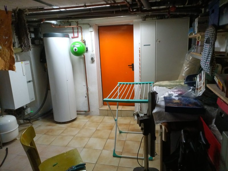 Das Haus wurde 1950 erbaut und ist, unüblich für die Lage, vollunterkellert. So befindet sich im Keller neben einem Wasch- und Vorratsraum, einem Heizungs- bzw. Trocknungsraum noch ein großer Werkraum.
