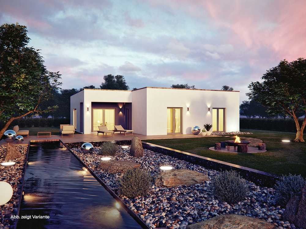 Unser  Flachdachbungalow ist modern geschnitten und lässt Wohnträume wahr werden. Über den großen und offenen Wohn-, Ess- und Kochbereich gelangt man direkt auf den überdachten Terrassenbereich. Die großen, bodentiefen Fenster sorgen für helle Räume.