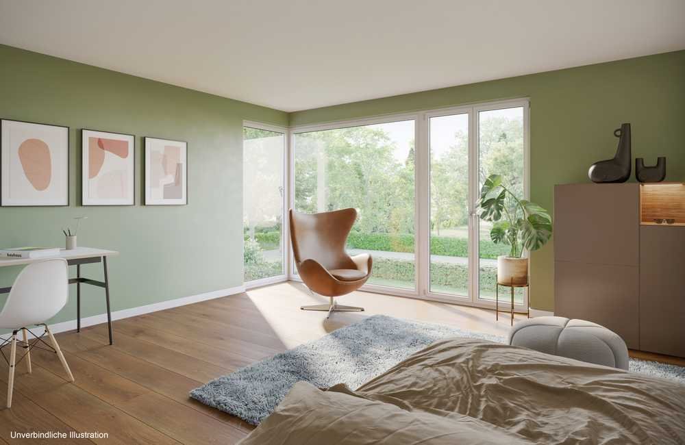 Weil die Häuser inmitten von schönen Gärten stehen, fällt der Blick stets ins Grüne. Aus dem Erdgeschoss tritt man auf seine Terrasse mit Garten. Alle Terrassen schauen nach Südwesten und kommen so in den Genuss besonders vieler Sonnenstunden. Bei einem gemütlichen Frühstück auf der Terrasse kann der Blick über den Garten schweifen oder grillen Sie mit Freunden, während die Kinder im Garten spielen.