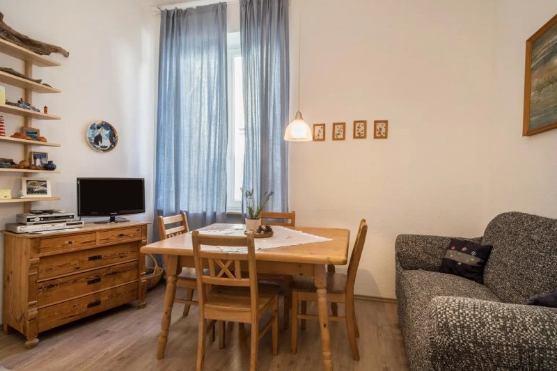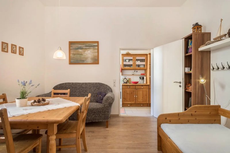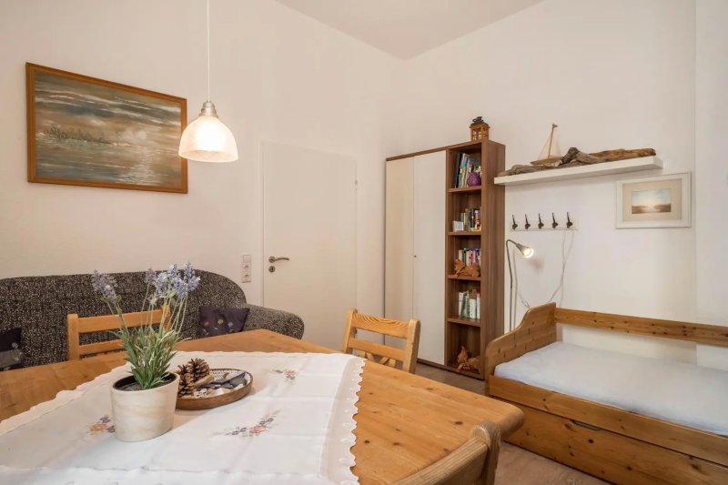 Das 43 m² große denkmalgeschützte Apartment mit stufenlosem Innenausbau besteht aus einem Wohnzimmer, einem Schlafzimmer sowie einem Badezimmer und bietet somit Platz für 4 Personen. Das Haus wurde 1910 erbaut und ist in den achtziger Jahren umfassend saniert worden. Seitdem ist das Objekt ein wahrer Blickfang. Die komplett renovierte und modernisierte Ferienwohnung befindet sich im ersten Stock. Die Gastgeber haben die Wohnung mit viel Liebe und Herzblut eingerichtet.