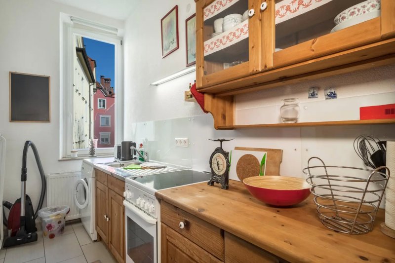 Zu de Annehmlichkeiten gehören WLAN, eine Waschmaschine, Kabelfernsehen, Brettspiele, Spielzeug und Bücher für Kinder sowie ein Hochstuhl auf Anfrage. Das charmante Zentrum von Lindau eröffnet sich direkt vor der Haustür, zahlreiche Geschäfte, Cafés und Restaurants sind im Umkreis von 100 m zu finden. In unmittelbarer Nähe befindet sich die um 1000 erbaute Peterskirche. Der angrenzende Diebsturm um 1380 diente lange Zeit als Gefängnis. Nur wenige Meter vom Schrannenplatz entfernt befindet sich die attraktive Fußgängerzone mit vielen netten Geschäften und Cafés. Der Bahnhof ist ca. 350 m entfernt. Das Highlight der Insel, die malerische Hafeneinfahrt mit den beiden Wahrzeichen Leuchtturm und Löwe erreichen sie in 2 Minuten zu Fuß. Zum Be- und Entladen können Sie direkt bis vor die Haustür fahren. Nach 550 m oder 6 Gehminuten können Sie im Bodensee baden.