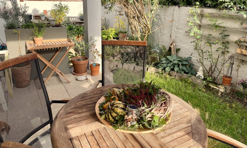 Gartenfläche ca. 75.30 qm mit Gartenteich und separater Terrassenfläche mit Steinplatten
