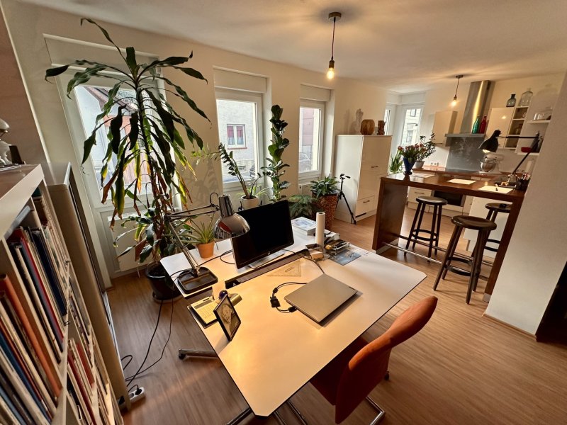 EG-Zweizimmerwohnung mit Bad und Küche, als Gewerbefläche genehmigt. Grundrissänderung: Trennwände leicht entfernbar „Trockenbau“
