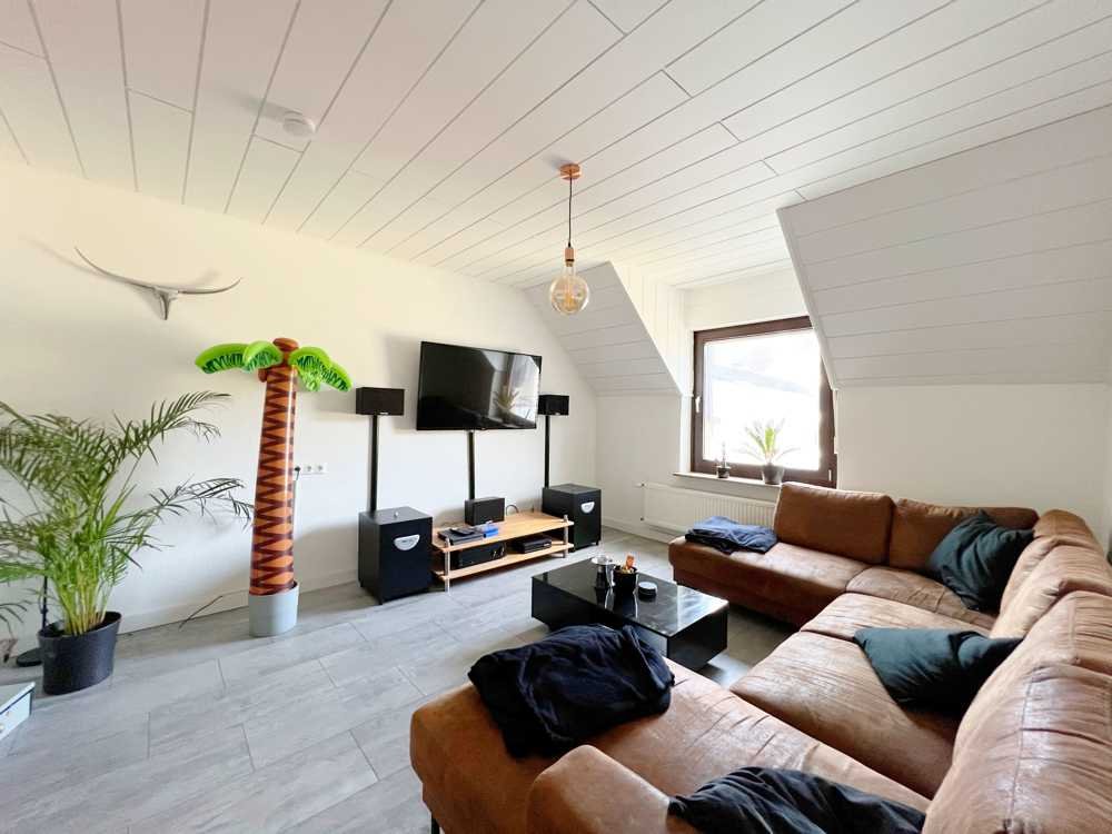 Gegenüber der Eingangstüre befindet sich das gemütliche Wohnzimmer, welches durch den Lichteinfall sowie seine Größe besticht und als Wohlfühlort dienen kann. Der Schnitt des Raumes ist durchdacht und ermöglicht freie Raumgestaltung.