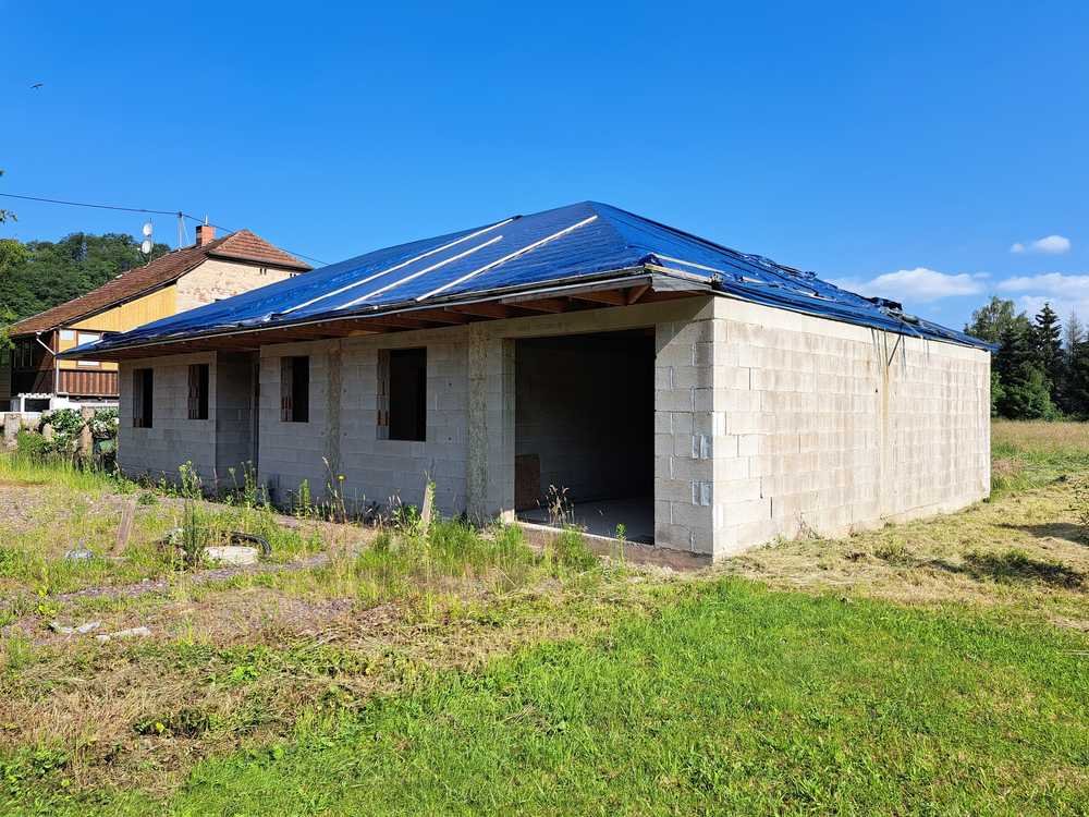 Der Rohbau mit Dach des freistehenden Bungalows kann zur weiteren Fertigstellung erworben werden. Die komplette Fertigstellung nach ihren Wünschen wäre ebenfalls möglich.