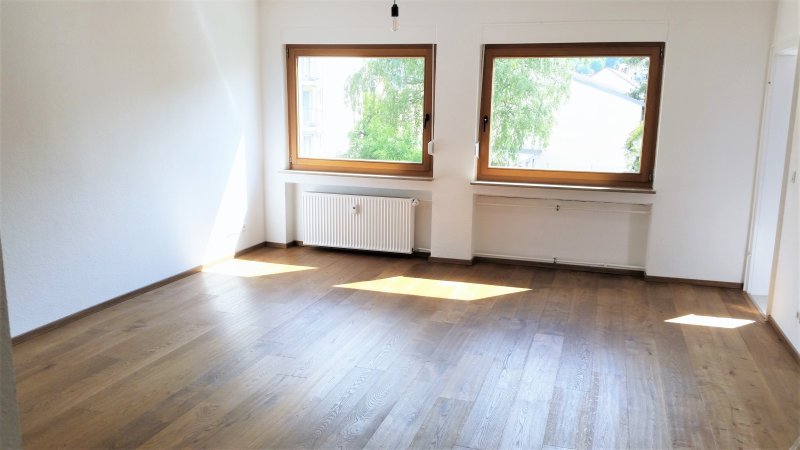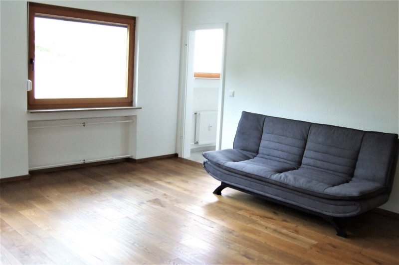 Schöne, neu renovierte und teilmöblierte 1-Zimmer-Wohnung mit ca. 39 qm. Großer heller Wohnraum mit ca. 28 qm und zwei großen Fenstern. Die Wohnung hat einen guten Grundriss mit separater Küche, Bad mit großer Dusche, Flur und großem Wohn/Schlafraum. Die Küche ist voll ausgestattet mit neuer moderner Einbauküche in Weiß-Hochglanz und Geräten. Sie ist ebenfalls sehr hell mit großem Fenster. Ein Wandklapptisch als kleiner Essplatz in der Küche ist auch vorhanden. Im Wohnzimmer ist ein modernes Schlafsofa und ein Schwebetürenschrank, die zur Wohnungsausstattung gehören. Das Bad ist vollständig neu renoviert mit großer Dusche (100 x 80 cm), Waschtisch mit Unterschrank und WC von Villeroy & Boch. Im Flur gibt es eine Garderobe und ein kleines Regal. Das Warmwasser und die Heizungen werden über Fernwärme erwärmt. Die Elektrik wurde in der ganzen Wohnung erneuert. Im Wohnzimmer ist ein neuer Eichenechtholzparkettboden. Schöne Aussicht auf die Rohrbacher Berge.