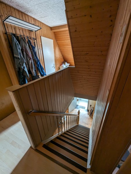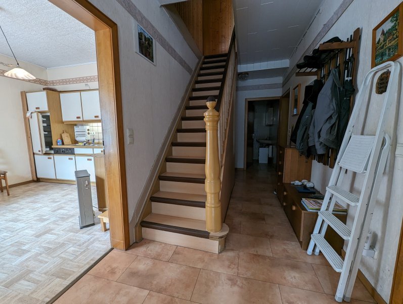 Dieses Einfamilienhaus wurde in den 90er Jahren umfangreich saniert und renoviert. Dabei wurde auch die erste Etage ausgebaut, mit zusätzlichem Schlafzimmer, Badezimmer und Küche.