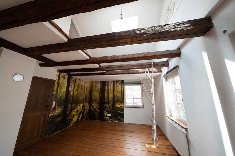 Sie lieben die alte Bausubstanz? Dieses Zweifamilienhaus lässt die Herzen von Fachwerkfreunden höher schlagen. Es wurde um 1800 errichtet, das exakte Baujahr ist unbekannt. In den letzten Jahren wurde damit begonnen, das Haus mit viel Liebe zum Detail zu sanieren. Dabei wurde Wert auf eine harmonische Mischung von alten und neuen Elementen gelegt. Das Gebäude besteht im Wesentlichen aus zwei Wohnungen. Die erste Wohnung liegt im ehemaligen Haupthaus und wurde bereits fast vollständig saniert. Daran angrenzend befindet sich das ehemalige Ökonomiegebäude, in dem aktuell eine zweite Wohneinheit entsteht. Hier fehlen bisher noch große Teile des Innenausbaus sowie Küche, Sanitär und Heizkörper. In dieser zweiten Wohneinheit sind die Heizungs- und Wasseranschlüsse bereits vorhanden und ein WC angeschlossen, außerdem ist ein Verteilerkasten vorhanden und Stromleitungen gelegt. Auch für eine Küche sind alle Anschlüsse vorbereitet.
