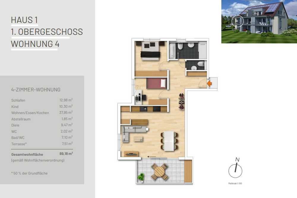 Einziehen und wohlfühlen! Durchdachte 3,5 Zi.-Wohnung im Obergeschoss Haus 1 Wohnung 4