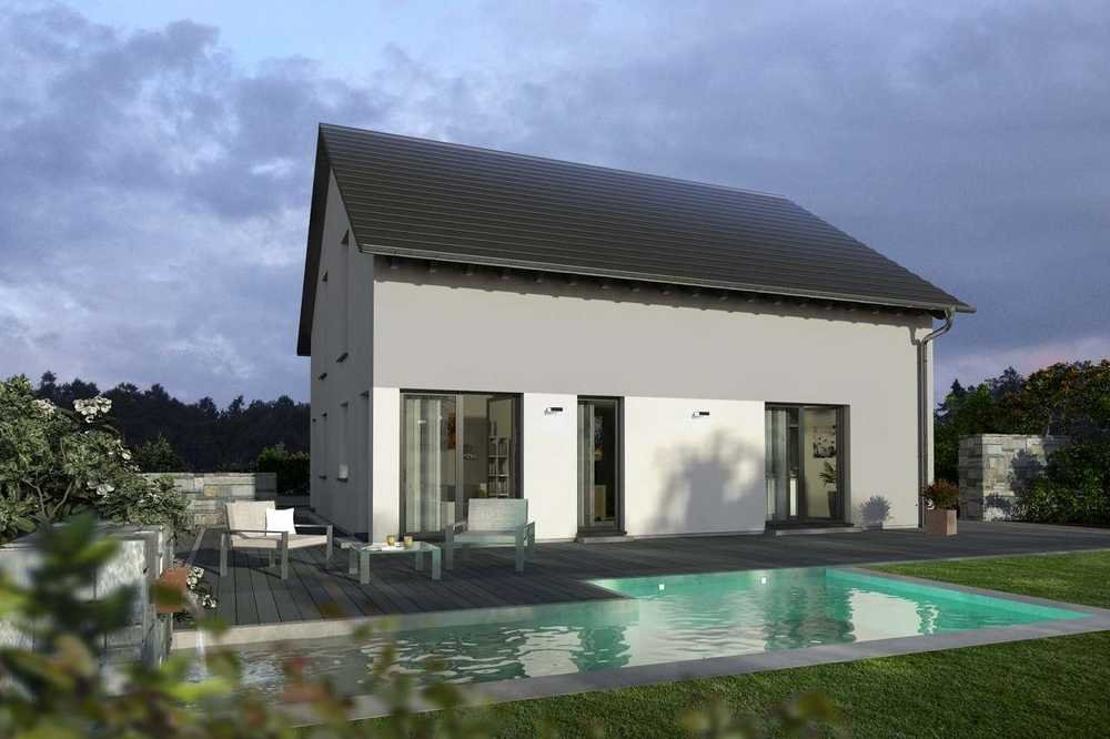 Das Einfamilienhaus Design 16 besticht auf zwei Etagen durch sein großes Platzangebot, die clevere Raumaufteilung und exklusive Ausstattungsdetails. Vom Eingang im Erdgeschoss führt ein langer Flur geradeaus in den gegenüber liegenden Essbereich, der zu beiden Seiten offen ist und in den großen Wohnbereich und in die Küche übergeht. So findet das Tageslicht, das durch die zahlreichen Fenster und Glastüren dringt, seinen Weg bis in den letzten Winkel. Ergänzt wird das Raumangebot im Erdgeschoss durch den von der Küche aus zugänglichen Hauswirtschaftsraum, das Gäste-WC mit Dusche direkt am Eingang sowie das lichtdurchflutete Arbeitszimmer, das selbstverständlich auch als Gästezimmer genutzt werden kann. Im Obergeschoss gelangen Sie von der zentral gelegenen, geräumigen Galerie in den großzügig bemessenen Elternbereich mit Schlafzimmer, direkt angrenzendem begehbarem Kleiderschrank und einem Badezimmer.