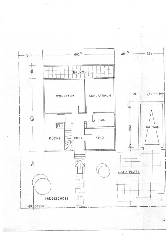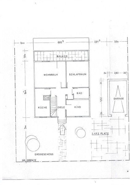 EG: Eingangsdiele, Küche, Bad, 2 Zimmer, Balkon.