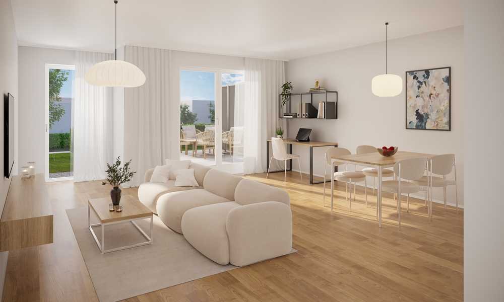 Modern und Offen: Diese helle und sehr große 2-Zimmer Wohnung ist ideal aufgeteilt in Wohn- und Privatbereich. Das Badezimmer bietet durch eine große Dusche und einen Handtuchheizkörper besonderen Komfort. Daran grenzt ein zusätzliches Gäste-WC an. Der Wohn-/Ess- und Kochbereich ist sehr großzügig und offen gestaltet. Bodentiefe Fenster lassen viel Licht in diesen großen Bereich. Komplettiert wird dies alles durch eine Terrasse und einen großen Gartenanteil. Ein Zuhause zum Wohlfühlen!