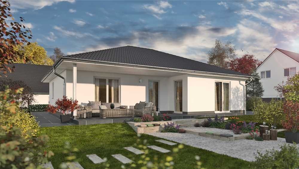Wohnglück ohne Hindernisse - Dieser Bungalow fällt nicht nur durch sein charmantes Design auf. Die markante Winkelform ermöglicht auch einen variablen Grundriss. Die besondere Raumanordnung des Winkelbungalows 108 sowie die vielen kleinen Details machen das Wohnen für Sie zum Genuss.