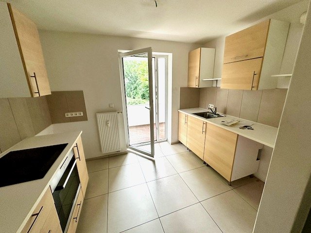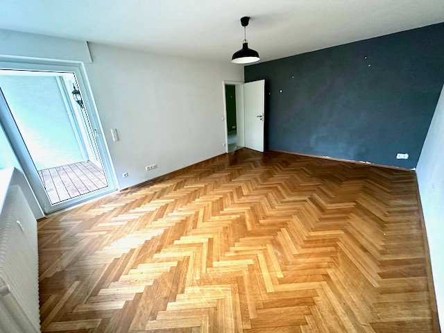 Das Herzstück der Wohnung ist der großzügige Wohnbereich mit edlem Parkettboden und direktem Zugang zum Balkon, der perfekt für entspannte Stunden im Freien geeignet ist. Die Küche ist modern ausgestattet und schließt harmonisch über den Balkon an den Wohnbereich an.