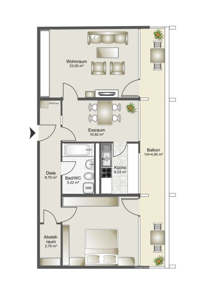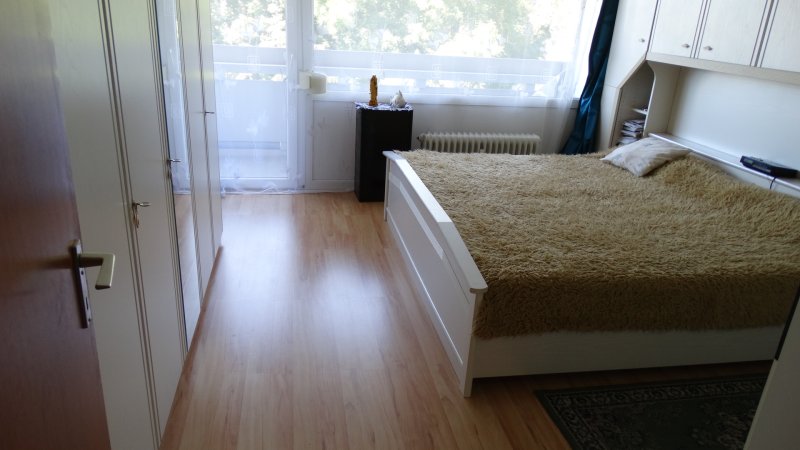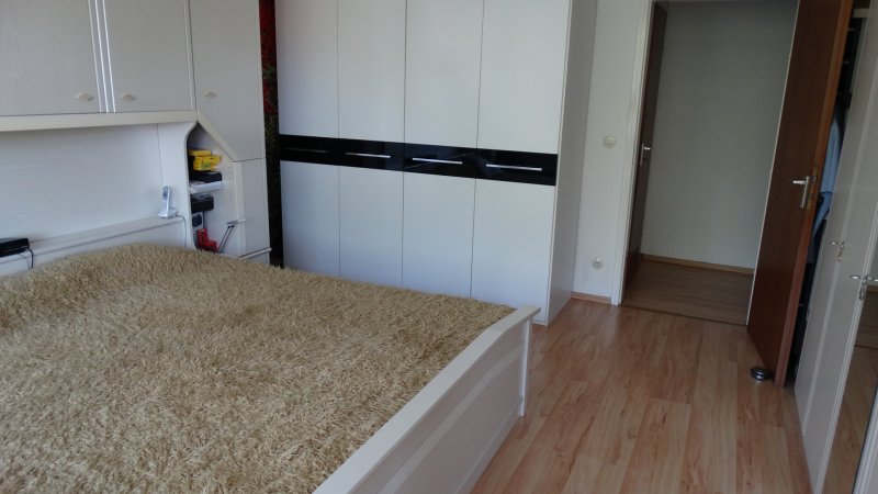 - Wohn- und Schlafzimmer mit Zugang auf den Balkon