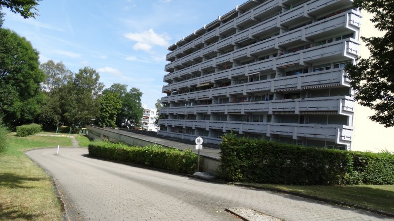 Die Wohnung befindet sich im 2. Obergeschoss eines 8-geschossigen Mehrfamilienhauses im zentralen Stadtbereich in der Wieland-Wagner-Straße in Bayreuth.
