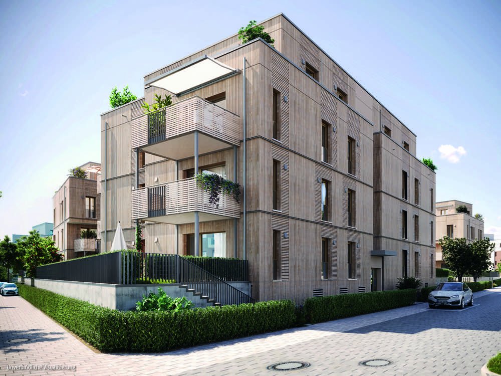 Die 47 Wohnungen mit 2 bis 5 Zimmern verteilen sich auf drei Gebäude, die eine weitläufige Grünanlage verbindet. Der Schwerpunkt liegt hier auf familiengerechten 3- und 4-Zimmer-Wohnungen: