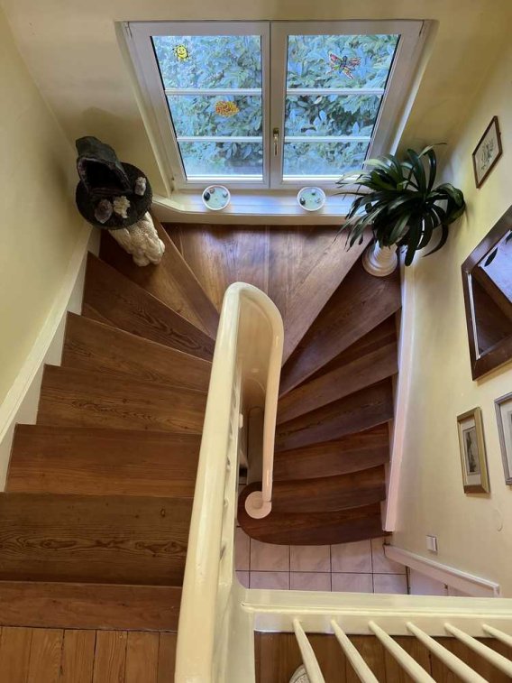 Über eine schöne und restaurierte Holztreppe, gelangen Sie in das Obergeschoss des Hauses.