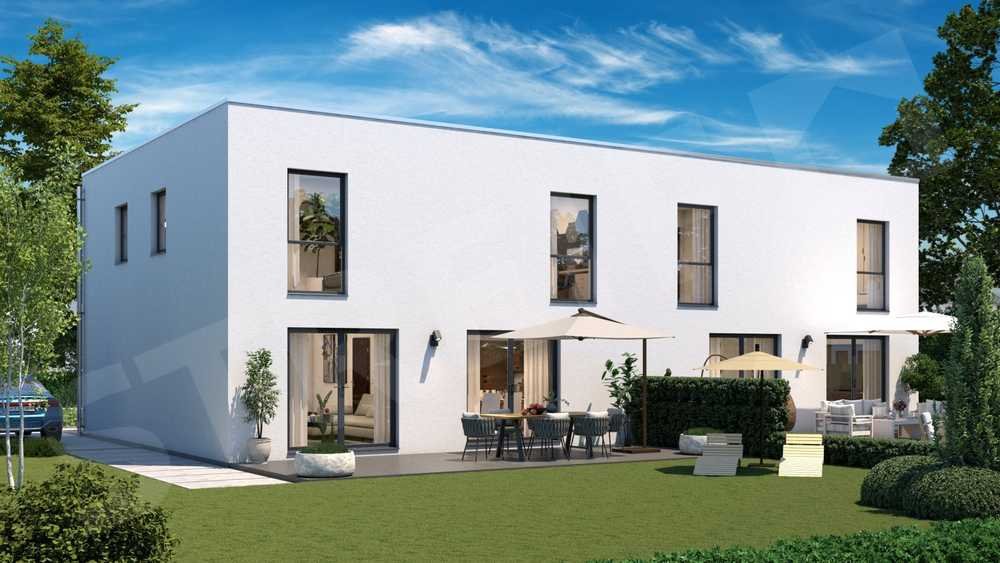 Der angegebene Preis bezieht sich auf eine Doppelhaushälfte inklusive PV-Anlage und der Vorbereitung für die Dachbegrünung.