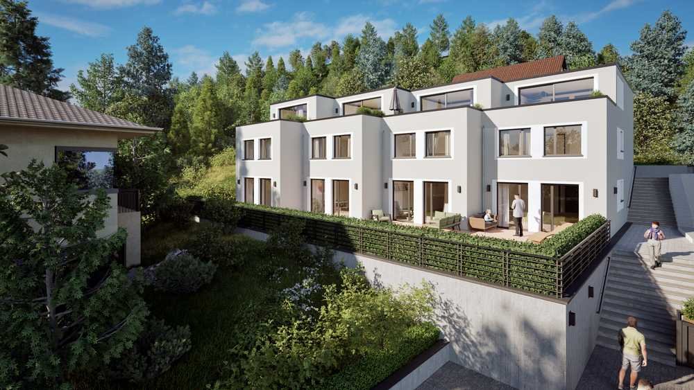 Hier werden auf einem großzügigen Grundstück 4 moderne Stadthäuser in ruhiger Lage mit traumhafter Aussicht gebaut.