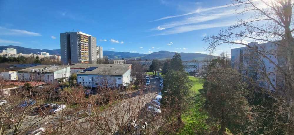 Die angebotene 2-Zimmer-Wohnung befindet sich im 4. Obergeschoss eines achtstöckigen Mehrfamilienhauses aus dem Jahr 1968, in der Bugginger Straße 29–47 im Freiburger Stadtteil Weingarten.