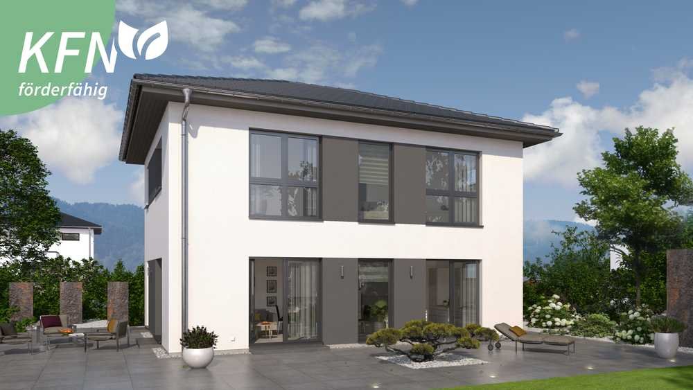 Ein Walmdach, das verkörpert Eleganz und vermittelt einen edlen, fast schon herrschaftlichen Eindruck. So auch bei dieser Stadtvilla mit Walmdach. Das große Plus: Dank dieser Dachform gibt es im Obergeschoss keine Dachschrägen und damit zahlreiche Möglichkeiten zum Positionieren der Möbel. Doch diese Stadtvilla kann noch mit vielen weiteren kleinen und großen Ausstattungs- und Grundrissdetails punkten. So gibt es im ca. 78 m2 großen Erdgeschoss eine räumliche Zweiteilung: die Zimmer zum Entspannen und Zusammenkommen auf der Gartenseite, die funktionellen Räume auf der, der Straße zugewandten, Seite. Konkret bedeutet das: vom großen Wohn-Ess-Koch-Bereich ist der direkte Zugang auf die Terrasse und damit ins Grüne möglich. Büro, Hauswirtschaftsraum sowie Gäste-WC sind unterdessen gegenüberliegend und unmittelbar aus der Diele zugänglich. Im Obergeschoss befinden sich neben dem Reich der Eltern zwei identisch große Kinderzimmer sowie ein geräumiges Bad mit Wanne, Dusche und WC.