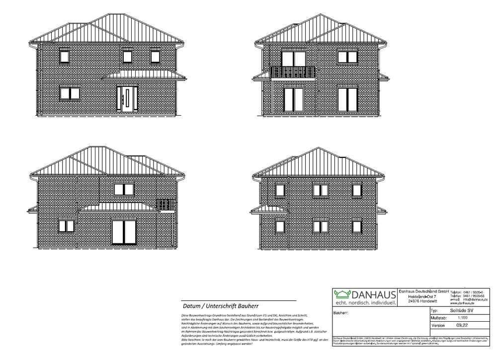 Die elegante Stadtvilla mit Walmdach präsentiert sich in einem modernen Design, das Funktionalität und Stil vereint. Der offene Wohn-, Ess- und Kochbereich schafft eine einladende Atmosphäre, während die große Diele als zentraler Punkt dient. Praktische Features wie das Gäste-WC und die Speisekammer bieten zusätzlichen Komfort. Der Technikraum sorgt für optimale Raumausnutzung.