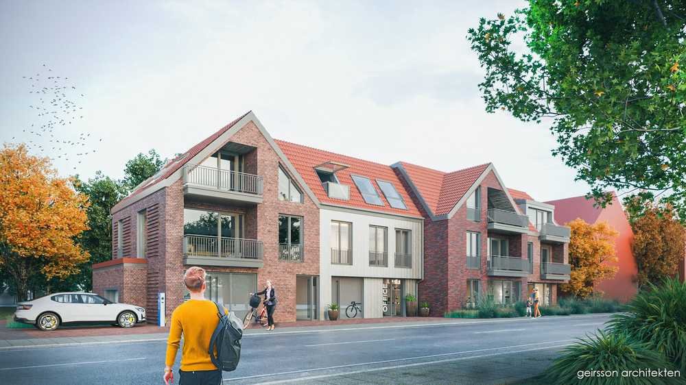 Insgesamt entstehen auf zwei Geschossen und einem Dachgeschoss 15 barrierearme Wohnungen mit einer Wohnfläche von ca. 60 m² (für 2-Zi.-Wohnungen) bis 120 m² (für 3-Zi.-Wohnungen) sowie eine Gewerbeeinheit.