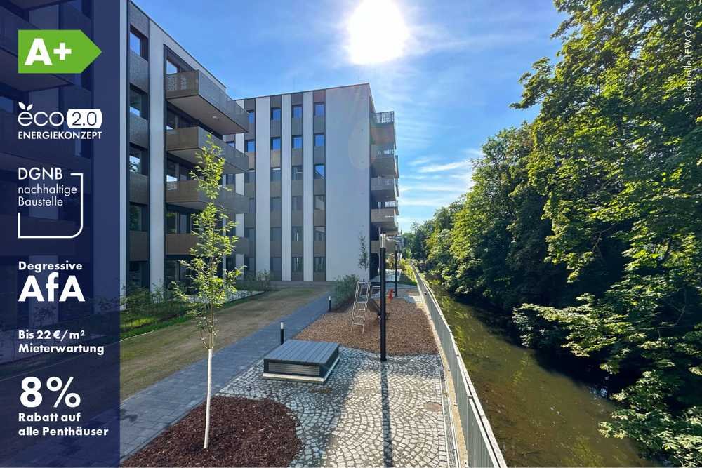 Mitten im Naturschutzgebiet – im Herzen der Stadt – zwischen Elstermühlgraben und Rosental befindet sich unser Projekt PURA mit insgesamt 78 Wohneinheiten und einer Tiefgarage.