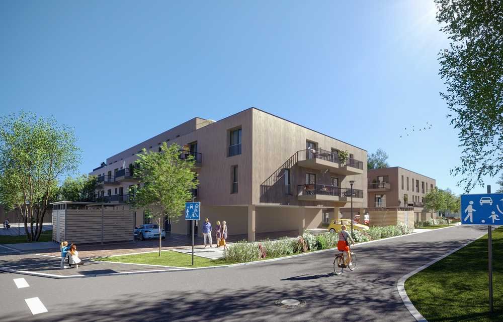 Die 2-Zimmerwohnung befindet sich im 1. Obergeschoss des Hauses C auf dem Neubaugelände Saas ONE. Sie verfügt über einen großen Balkon, einen hellen Wohn-/Koch-/Essbereich, ein Schlafzimmer ein Bad mit WC und Dusche sowie einen Abstellraum. Ein separater Abstellraum im Keller gehört zum Angebot.