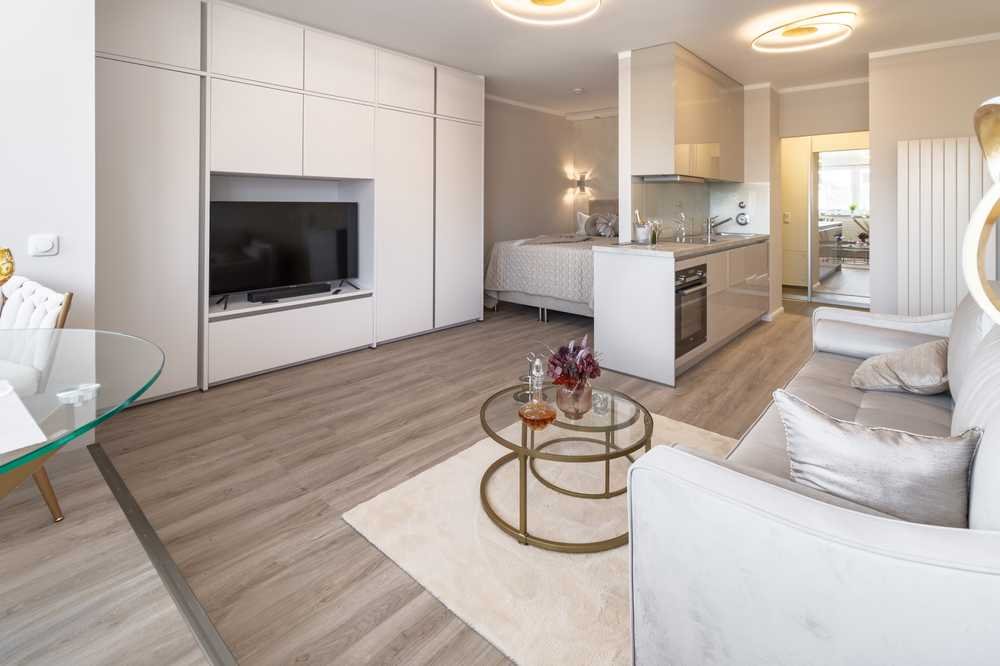 Dieses luxuriöse 35 qm Apartment befindet sich in Travemünde in direkter Nähe zum idyllischen Godewind-Park und ist Teil eines im Jahr 1982 erbauten Gebäudes mit insgesamt 8 Wohneinheiten. Das Apartment ist hochwertig möbliert und vollständig ausgestattet, wobei jedes Detail mit viel Liebe und Hingabe ausgewählt wurde. Besonderes Augenmerk liegt auf einem durchdachten Farb- und Lichtkonzept, das höchsten ästhetischen Ansprüchen gerecht wird und ein stilvolles, „cozy“ Ambiente schafft. Der diskrete Schlafbereich ist mit einem komfortablen Boxspringbett ausgestattet und sorgt für erholsamen Schlaf. Die moderne Einbauküche mit Markengeräten bietet alles, was für den Alltag benötigt wird. Im Flur befindet sich hinter einem verspiegelten Raumteiler ein Waschtrockner sowie eine Kühl-Gefrierkombination. Das Badezimmer ist mit eleganten Sanitärelementen – inkl. einer Wanne – und Feinsteinzeug Fliesen ausgestattet, ideal für entspannende Stunden. Zu dem Apartment gehören ein Kellerabstellraum und ein Tiefgaragenstellplatz im Doppelparksystem. Außerdem steht eine wunderschöne Gartenanlage zur Mitbenutzung zur Verfügung, die Ruhe und Entspannung inmitten der Natur bietet. Die Wohnung wurde 2023 komplett saniert. Küche, Bad, Bodenbeläge, Heizkörper inkl. Zuleitungen sowie die elektrischen Leitungen komplett erneuert, der Grundriss optimiert. Das Apartment ist somit eine Erstbezug-Wohnung und vermittelt durch die luxuriöse Ausstattung und die durchdachten Designkonzepte ein Gefühl von Exklusivität und Gemütlichkeit. Das Wohngeld beläuft sich aktuell auf 151,67 € (Erhaltungsrücklage 17,48 €) , der Stellplatz in der Tiefgarage kostet 6.000 €. Das hochwertige Inventar ist bereits im Kaufpreis enthalten. Überzeugen Sie sich selbst und vereinbaren Sie mit uns einen Besichtigungstermin!