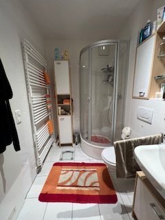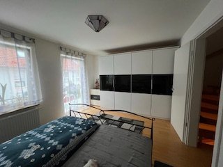 Der erste Stock verfügt über ein großes Schlafzimmer, ein Gästezimmer, sowie ein Bad mit Wanne und separater Dusche.