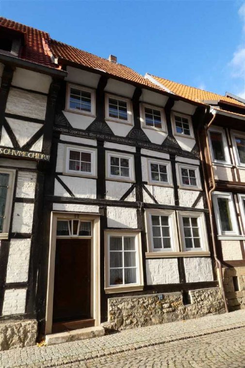 Das unter Denkmalschutz stehende Fachwerkhaus (Baujahr 1586) liegt in einer geschlossenen Häuserreihe im Ortskern von Hornburg.