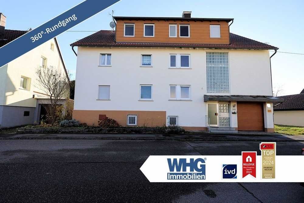 Das Dreifamilienhaus wurde mehrfach umgebaut und 1971 saniert. Es befindet sich auf einem 664 m² großen Grundstück in ruhiger Wohnlage von Murr an der Murr. Hinter dem Grundstück und daneben befinden sich noch zwei weitere Flurstücke, die gemeinsam veräußert werden. Somit ist die Gesamtfläche1274 m² baureifes Land.