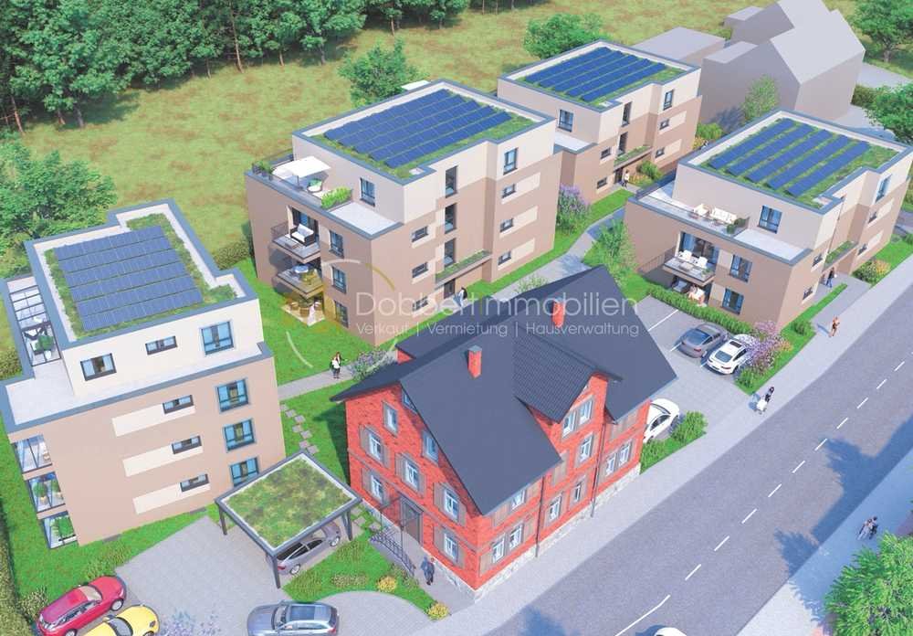 Wir bauen für Sie Ihre schlüsselfertige Traumwohnung in einem KFW Effizienzhaus 40 nach EnEV - für höchste wirtschaftliche und umweltbewusste Effizienz. Hier entstehen für Sie Räume zum Wachsen, Leben und Atmen. In den eigenen vier Wänden lässt sich jeder Augenblick am besten genießen. Daheim fühlen wir uns behaglich, entspannen und schöpfen Lebensenergie. Hier können wir vom Alltag abschalten und alles hinter uns lassen. Ob als Single, in trauter Zweisamkeit oder als Familie - für jedes Lebenskonzept haben wir das passende Angebot: attraktive und moderne 2 bis 4-Zimmer-Wohnungen mit ca. 62 m² bis 83 m² Wohnfläche für gehobene Ansprüche. Erleben Sie die Ruhe auf Ihrer Terrasse oder auf dem Balkon und den schönen Blick auf die begrünte Umgebung. Einfach daheim sein und entspannen. Im Untergeschoss, befinden sich geräumige Kellerräume, Stellplätze für Fahrräder und Garagen. Zentrale Heizungsanlage mit Wärmepumpe Luft / Wasser. • Lüftungsanlage dezentral mit Wärmerückgewinnung • barrierefreier Zugang durch Aufzug in alle Ebenen • Fenster mit Dreifachverglasung und elektrisch bedienbaren Rollläden • Videosprechanlage mit Farbmonitor • Bad mit Handtuchheizkörper • Sanitärausstattung Badausstattung von Elements, Serie Vigour derby style. • Fußbodenheizung in allen Wohnräumen• Rauchmelder • ultraflache komfortable Walk-In-Dusche • exklusive Fliesenvariationen • modernste Sicherheits- und Energiespartechnik • Wohn-Wohn-/Esszimmer mit massivem Eichenparkett, Wohn- und Schlafräume m. Laminatboden • erhöhte Schall- und Wärmedämmung • große Balkone und Terrassen, Belag mit Douglasie Holzdielen • Treppenbeläge im Treppenhaus aus einem hochwertigem Granit • Anschlusskosten (Wasser und Strom) im Kaufpreis enthalten • Haus unterkellert mit Stellplätzen in der Tiefgarage • Geräumige Abstellkeller zu jeder Wohnung • Separate Kinderwagen- und Fahrradkellerräume • Großer gemeinsamer Wasch- und Trockenraum • schöne Außenanlage