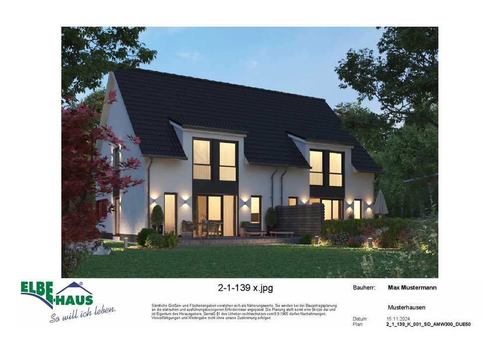 Dieses innovative Elbe-Haus® wird in massiver Bauweise von qualifiziertem Fachpersonal errichtet. Wir planen und projektieren nach Ihren Vorstellungen und Wünschen und somit ist wirklich jedes Haus einzigartig. Beachten Sie bitte, dass das abgebildete Haus lediglich ein Bebauungsbeispiel ist. Das Grundstück kann unter Berücksichtigung der örtlichen Bauvorschriften mit Ihrem Wunschhaus von Elbe-Haus® errichtet werden.