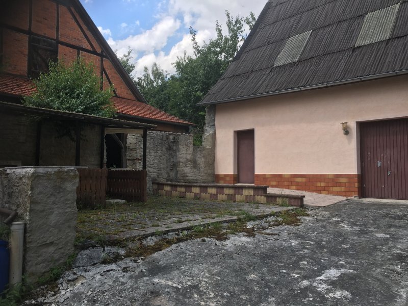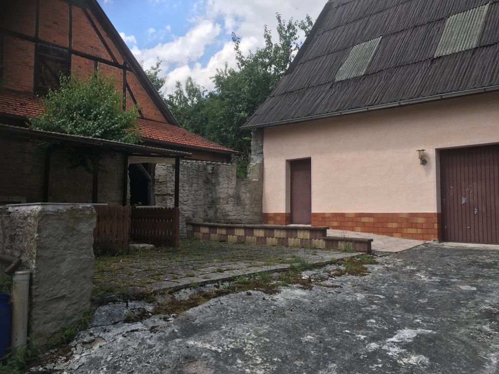 Grundstück mit Wohnhaus und Nebengebäude. Gemütlicher Innenhof. Garten ist hinter dem Nebengebäude. Auf dem Nebengebäude kann gebaut werden. Sindolsheim; 510 qm