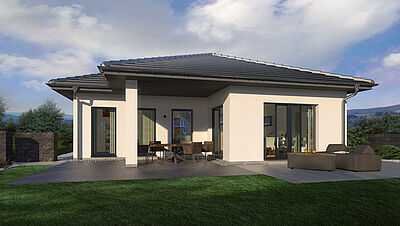Wählen Sie auch bei diesem Bungalow zwischen Walm- und Flachdach.