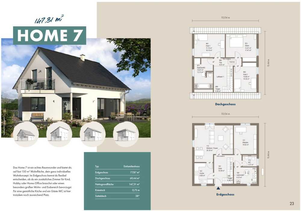 Das HOME 7 ist ein Haus, das den Traum vom eigenen Zuhause wahr werden lässt. Schon beim Betreten des großzügigen Wohn- und Essbereichs oder der geräumigen Küche wird deutlich, welche Vorteile dieses Haus bietet. Es bietet vielfältige Gestaltungsmöglichkeiten und hat das gewisse Etwas, das Ihnen ein angenehmes Wohnen auf lange Sicht ermöglicht. Mit diesem Haus können Sie Ihren individuellen Wohnstil verwirklichen und sich rundum wohlfühlen.
