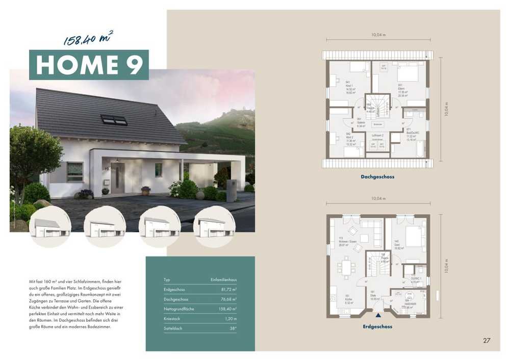 Mit fast 160 m² und vier Schlafzimmern, finden hier auch große Familien Platz. Im Erdgeschoss genießt du ein offenes, großzügiges Raumkonzept mit zwei Zugängen zu Terrasse und Garten. Die offene Küche verbindet den Wohn- und Essbereich zu einer perfekten Einheit und vermittelt noch mehr Weite in den Räumen. Im Dachgeschoss befinden sich drei große Räume und ein modernes Badezimmer.