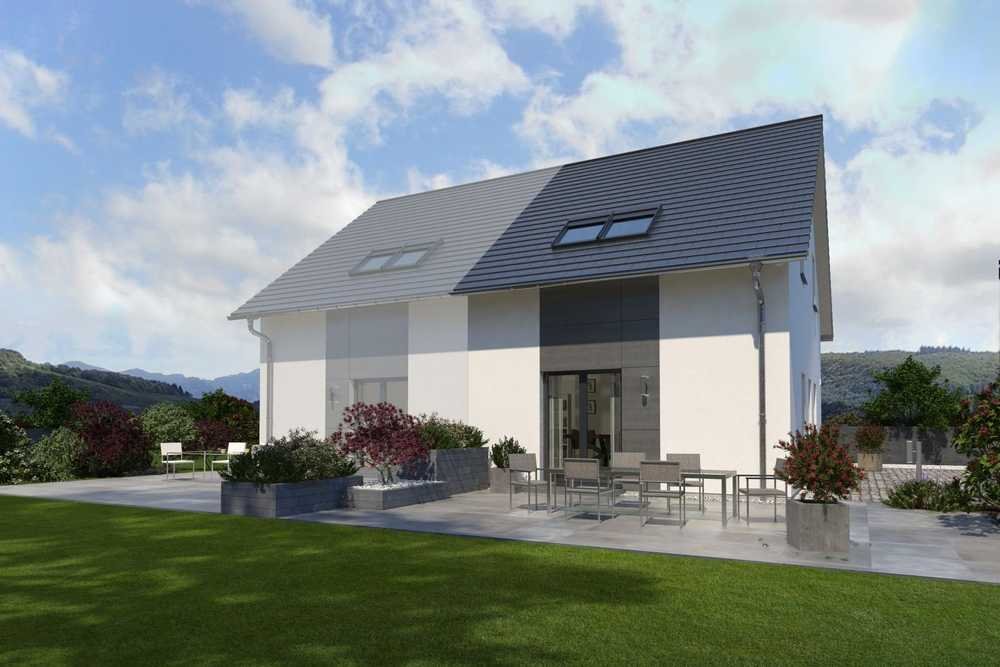 Unter dem eleganten Satteldach befinden sich zwei Wohneinheiten - und diese verteilen sich auf zwei Ebenen. Sie bieten ausreichend Raum und Komfort. Das Erdgeschoss prägt ein großzügig gestalteter Wohn-Ess-Bereich mit integrierter Küchenzeile. Aus der Küche hat man direkten Zugang zu einem großen und praktischen Hauswirtschaftsraum, der zahlreiche Lagermöglichkeiten bietet. Ein Gäste-WC und eine Garderobe befinden sich ebenfalls auf dieser Etage. Die halbgewendelte Treppe im Dielenbereich unterteilt das Erdgeschoss auf elegante Weise in Nutz- und Wohnbereich. Im Dachgeschoss stehen den künftigen Eigenheimbesitzern rund 50 m² Wohnfläche zur Verfügung - und die lassen dank ihrer durchdachten Raumaufteilung keine Wünsche offen. Das Elternschlafzimmer sowie das Kinderzimmer wirken durch die Dachschrägen besonders heimelig und bieten dennoch ausreichend Raum zum Stellen von Möbeln, zum Erholen, Entspannen und Spielen. Ebenfalls auf dieser Ebene: ein großes Tageslichtbad mit Wanne, Dusche und WC. Hier lautet die Devise: maximaler Wohnkomfort auf kleinem Raum.