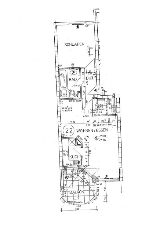 Balkon: 7,79 m², davon 50 % = 3,89 m²