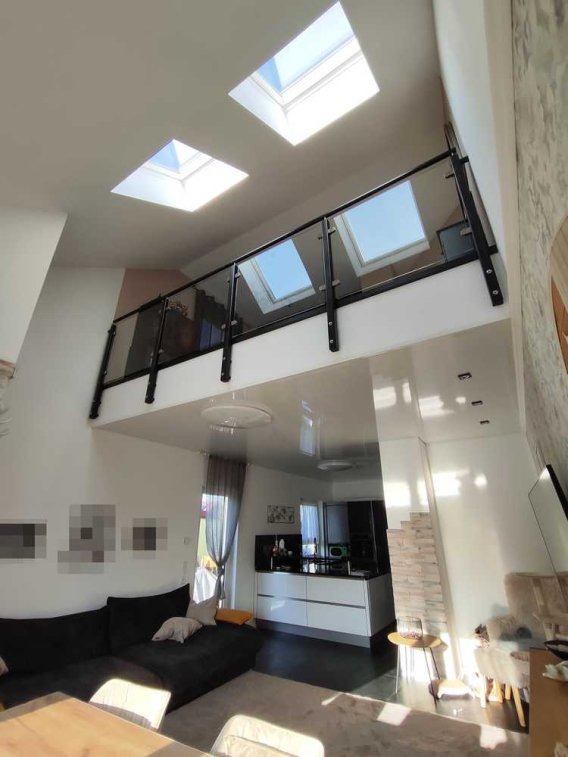 Die Galerie im Obergeschoss verbindet Eleganz mit Funktionalität und schafft einen einzigartigen Rückzugsort.