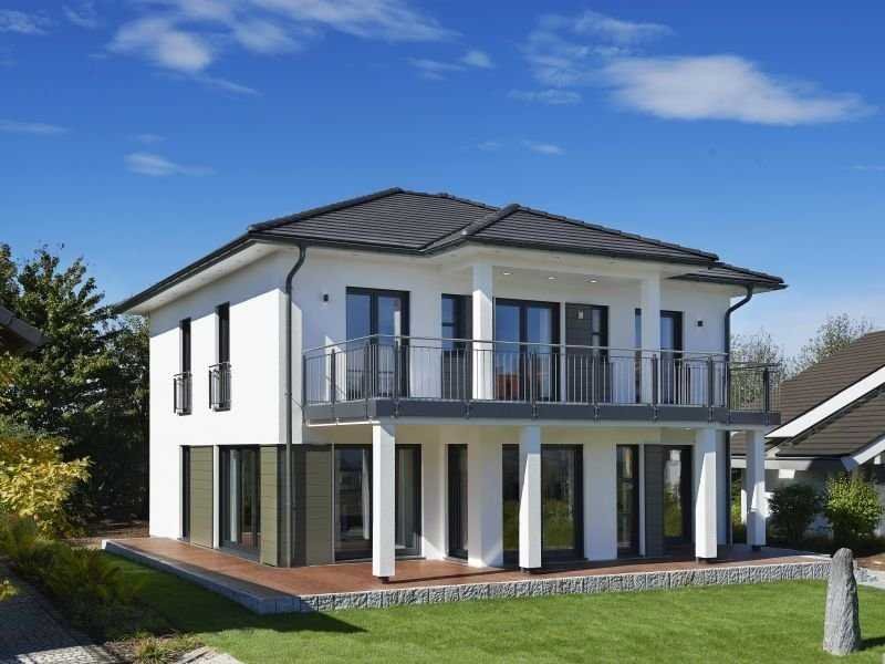 Klare Formen und kubische Elemente unterstreichen den markanten Charakter dieser beeindruckenden Stadtvilla.