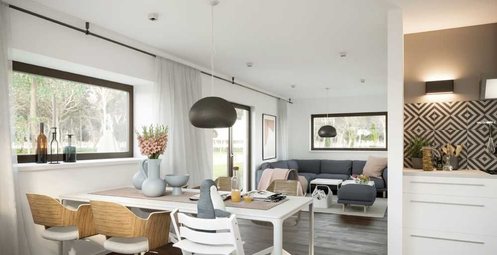 Im Erdgeschoss erwartet Sie ein geräumiges Wohnzimmer mit großen Fenstern, die viel Tageslicht hereinlassen. Die offene Küche bildet das Herz des Hauses und ist ideal für das gesellige Beisammensein. Das Esszimmer bietet Platz für gemeinsame Mahlzeiten und Feierlichkeiten.