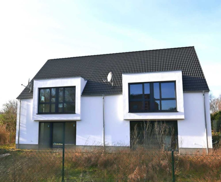 Sie bevorzugen naturnahes Komfortwohnen, bei dem energetische Aspekte nicht zu kurz kommen? Dann ist eine dieser Doppelhaushälften genau das Richtige für Sie. In massiver Bauweise und mit einer Wohnfläche von ca. 137 m² und einer Ausbaureserve von ca. 14 m² im Spitzboden sowie Grundstücke zwischen 356 m² und 377 m², bieten diese Anwesen Wohlfühlen vom Feinsten. Das Erdgeschoss brilliert mit einem lichtdurchfluteten Wohn- Essbereich und einer angrenzenden Terrasse, einem Gäste-Arbeitsbereich, einem Gäste-WC und dem Hauswirtschaftsraum. Das Obergeschoss hält 3 Schlafbereiche und ein Vollbad bereit. Der Spitzboden mit seinen ca. 14 m² dient als Abstellbereich und bei Bedarf als Ausbaureserve. Besonderes Augenmerk ist der Tatsache zu schenken, dass Sie nach dem Erwerb (notarieller Kaufvertrag) Fliesen, Türen und Fußbodenbelege selbst aussuchen und in Eigenleistung verbauen können. An kalten Tagen sorgt eine Luftwärmepumpe in Kombination mit der installierten Fußbodenheizung für wohlige Wärme. Zwei Stellplätze, die auf Wunsch auch mit einer Elektroladestation ausgestattet werden können, runden dieses attraktive Immobilienangebot ab. Die Doppelhaushälften befinden sich in der Ausbauphase. Der Bezug ist bei zeitnaher Kaufentscheidung ab Juni 2025 möglich. Die Kaufpreiszahlung erfolgt bei finaler Übergabe. Interessant? Dann freuen wir uns, Ihnen dieses Projekt vorstellen zu können und eine Besichtigung abzustimmen. Sollten Sie auf die Eigenleistung verzichten und schlüsselfertig übernehmen möchten, beträgt der Kaufpreis 399.000,00 €.