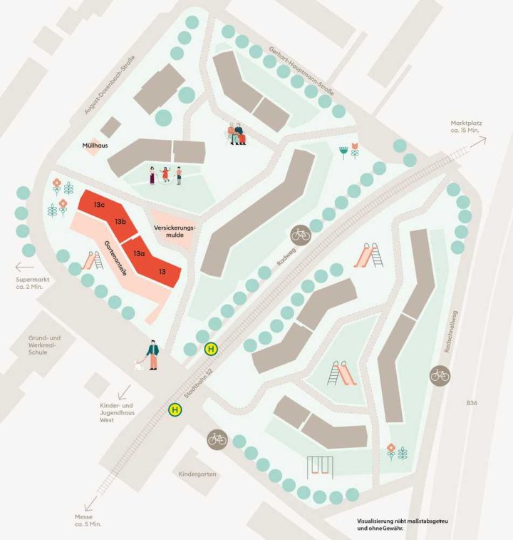 Insgesamt entstehen im August-Klingler-Areal 10 Zwei-, 22 Drei-, 19 Vier- und 4 Fünf-Zimmer-Wohnungen von ca. 46 m² bis 126 m². Alle Eigentumswohnungen im Erdgeschoss haben eine Terrasse mit Gartenanteil (Sondernutzungsrecht). Die weiteren Eigentumswohnungen haben einen Balkon bzw. eine Dachterrasse. Elf der 55 Wohnungen sind nach § 35 LBO barrierefrei.