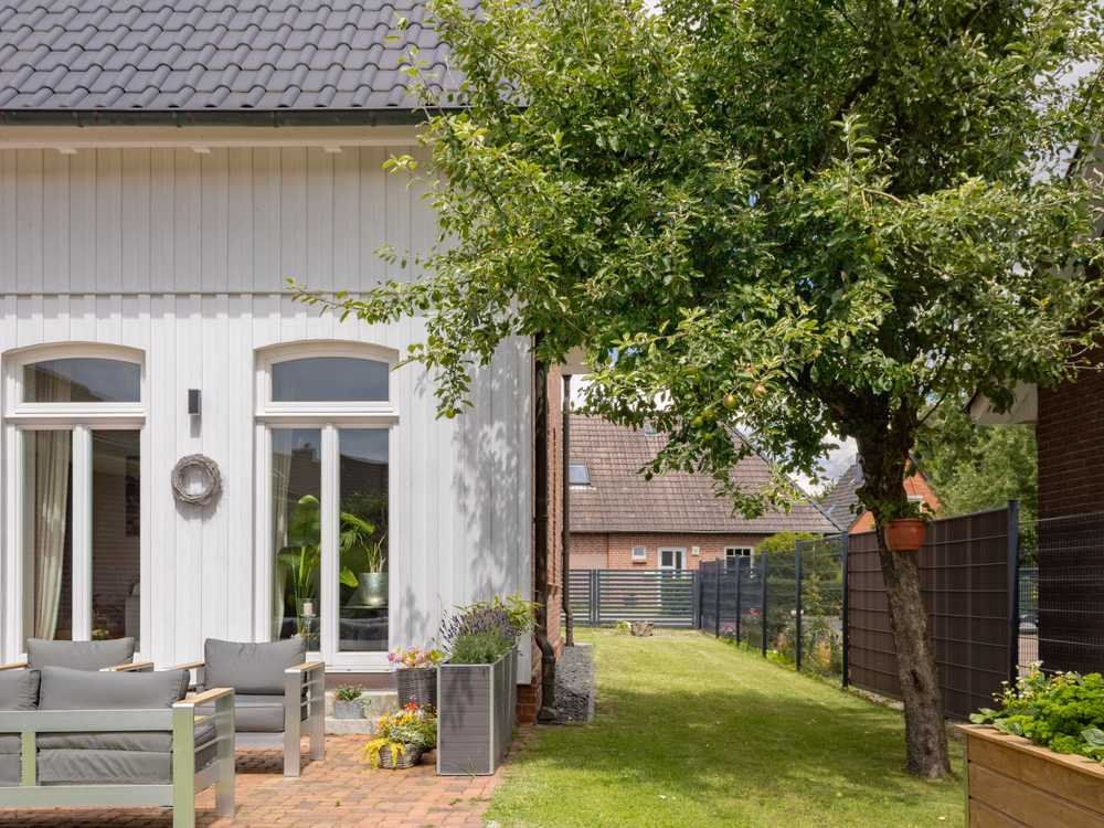 Sowohl die Küche sowie das Wohnzimmer bieten Zugang zur Süd-Terrasse und damit in den Gartenbereich bzw. Zugang zum Nebengebäude.